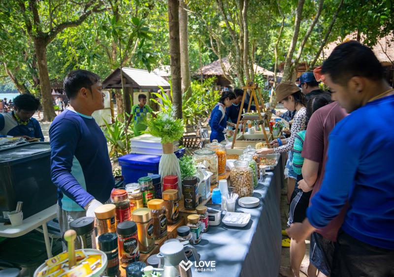 07.30น. | ลูกค้าเดินทางถึงท่าเรือ เลิฟอันดามัน (ท่าเรือทับละมุ) เพื่อทำการเช็คอิน รับประทานอาหารเช้า ของว่างเบเกอรี่ เครื่องดื่ม ( ชา, กาแฟ, น้ำผลไม้, ) จากนั้นฟังคำแนะนำจากมัคคุเทศก์พร้อมอธิบายโปรแกรม |