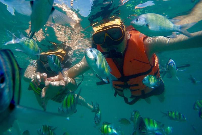 12.30 น เดินทางถึงเกาะไม้ท่อน ดำน้ำ ดุประการัง และฝูงปลาสวยงามมากมาย ที่จุดดำน้ำ และชมปลาโลมามาเล่นน้ำ เก็บภาพประทับใจ